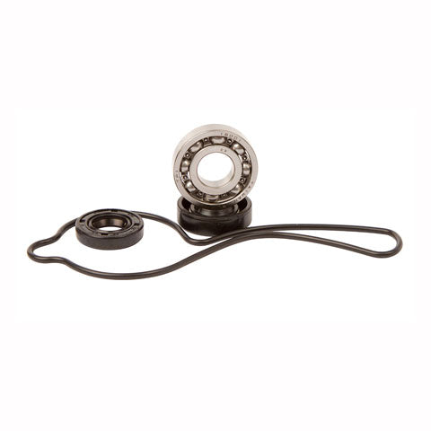 Kit includes water pump cover gasket or o-ring, water pump shaft bearing(s) and seal(s) to repair a leaking water pump seal and/or a failed bearing