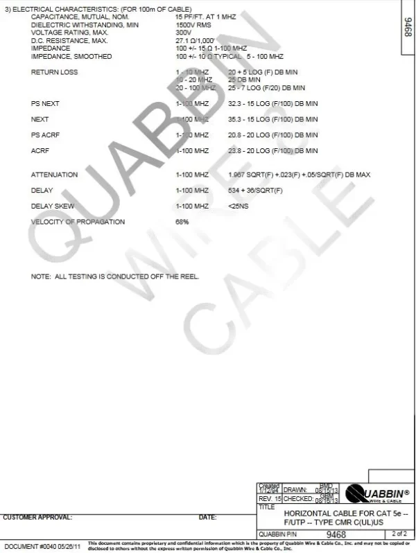 100′ DataMax Horizontal Cat 5e 24 AWG 4 pair, shielded, PVC MADE IN USA